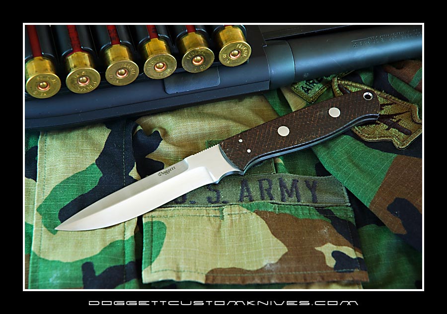 10 SEP 05 - I haven't done a serious web site update since before I deployed to Afghanistan in AUG 03. I am once again deploying overseas, so I felt I should post up the new work in the year that I have been home. All knives below are from 2005 and represent some of my regular models as well as a lot of experimentation with new stuff - perhaps not outrageously original, but new ideas for me. I will not have the shop back up and running until at least some time in 2009. In the meantime, enoy the pictures - Bob